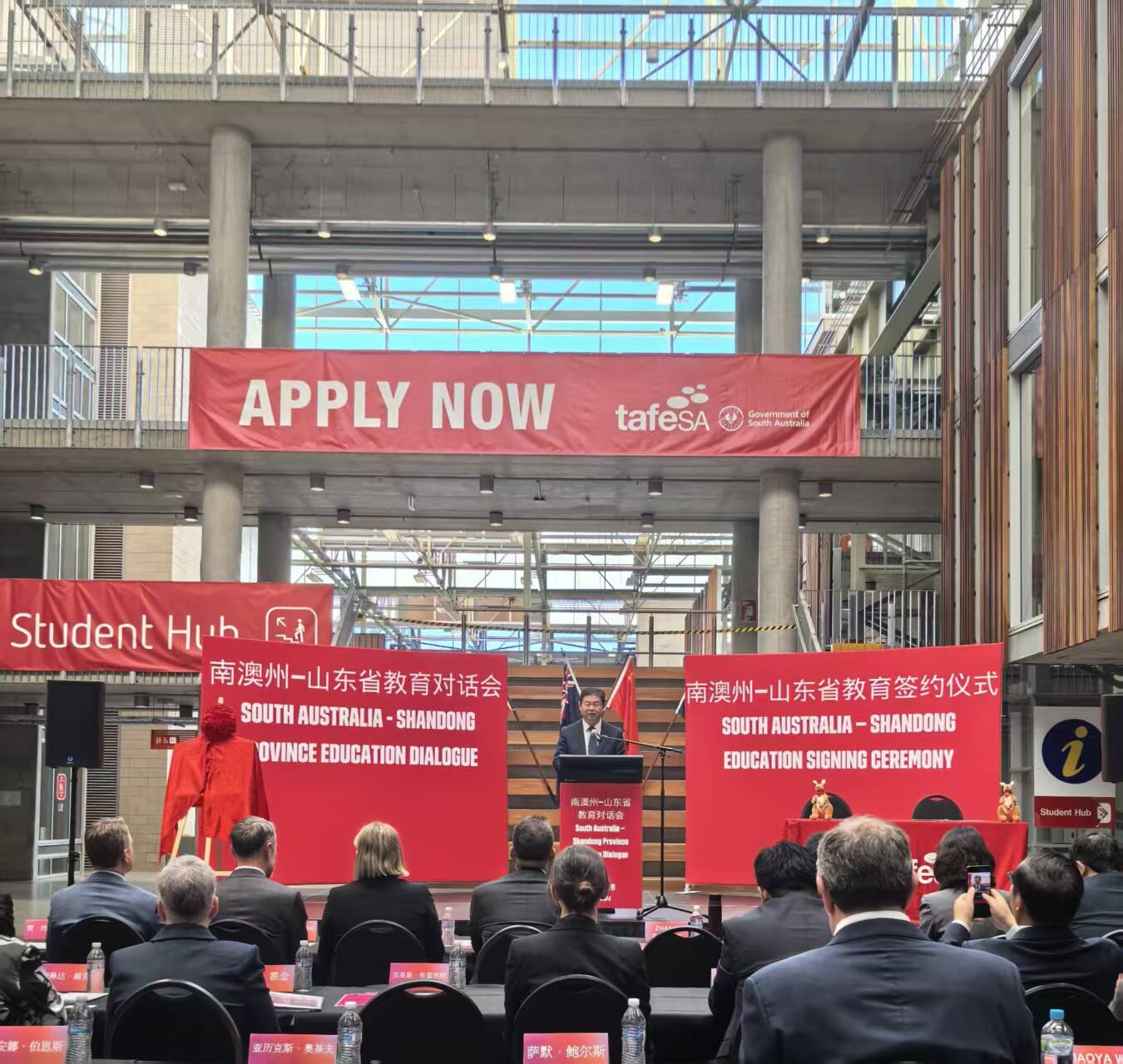 在阿德莱德访问期间,代表团参加“山东省-南澳州教育对话会”,与南澳教育推广署首席执行官简・约翰逊、阿德莱德大学副校长洛丽・霍金、弗林德斯大学副校长克里斯・布雷布纳等深入交流,进一步拓展校(院)与澳大利亚南澳州高校的教育合作空间,为后续多领域合作搭建平台。