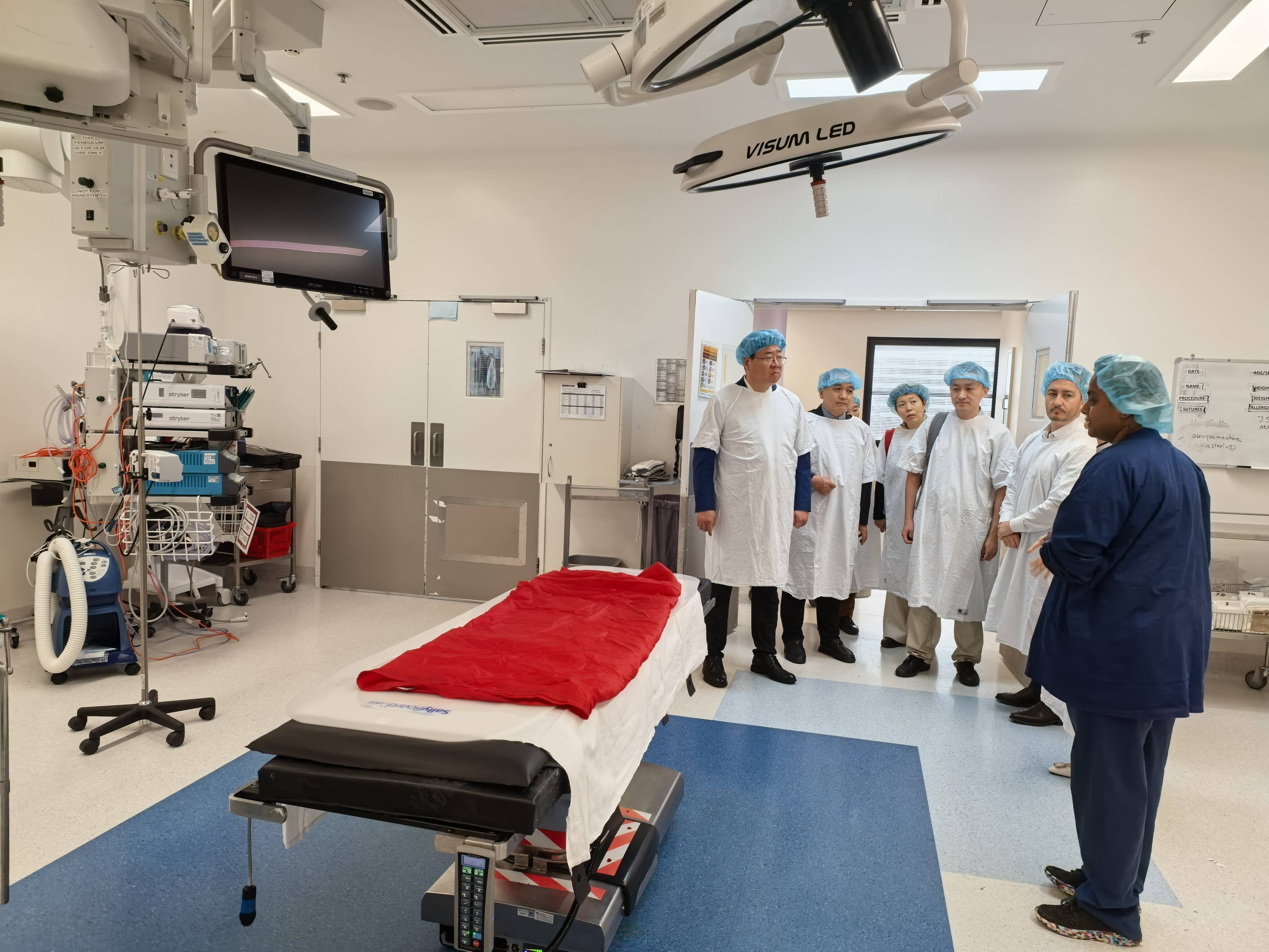 在诺威斯特私立医院,代表团与医院首席执政官蒂姆·辛克莱,神经外科普拉尚特·拉奥医生及团队成员,澳洲中国医师联合会常务秘书黄刘暖鸣教授聚焦神经外科诊疗技术、脊髓损伤康复、衰老相关疾病研究等进行学术交流。期间,实地调研医院急症中心、神经外科、普外科、脊柱外科、骨科及重症监护室的临床运营模式。