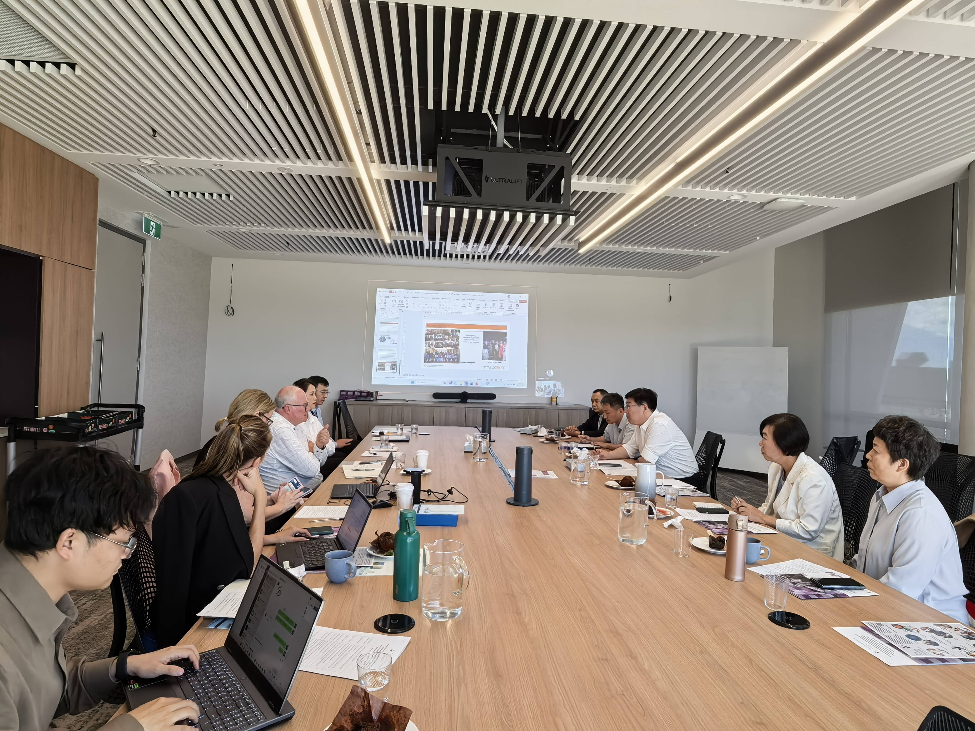 在悉尼大学戴夫迪尔研究中心,代表团与迈克尔・大卫教授、中国抗癌协会澳大利亚分会会长于学勤教授、克里斯蒂・麦克朗林博士围绕肿瘤防治、公共卫生等领域开展学术研讨,就研究生联合培养、临床实验数据分析共享、合作发表论文等方面达成合作共识。