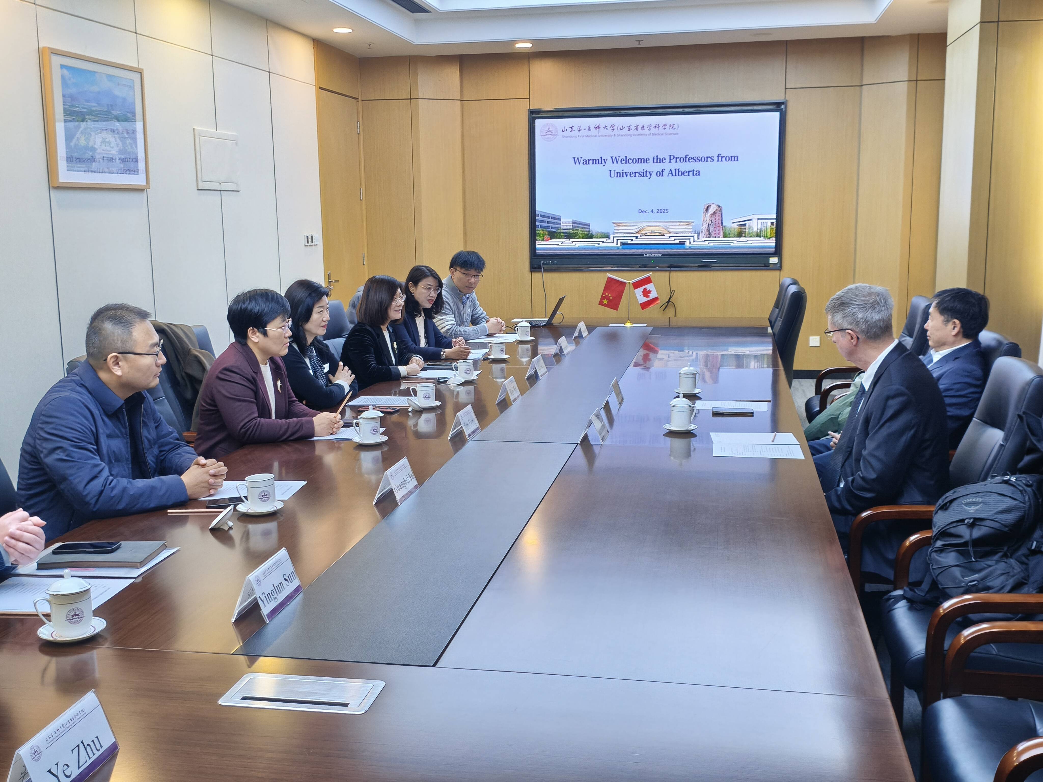 座谈会上,对外合作交流部详细介绍了校(院)在历史传承、学科布局、人才培养及国际合作等领域的发展概况;放射学院介绍了学院基本情况和建院40年来取得的丰硕成果。德雷克·约翰·埃默里介绍了阿尔伯塔大学放射学与诊断成像系的基本情况,特别是彼得·艾伦磁共振研究中心的科研设施、人工智能在医学影像中的应用以及多元化的国际与教育合作项目。双方围绕人才培养、科研合作等领域进行了深入交流,就联合申报国家留学基金委创新型国际人才联合培养项目、共同申办中外合作办学项目或机构等事宜达成初步合作意向。